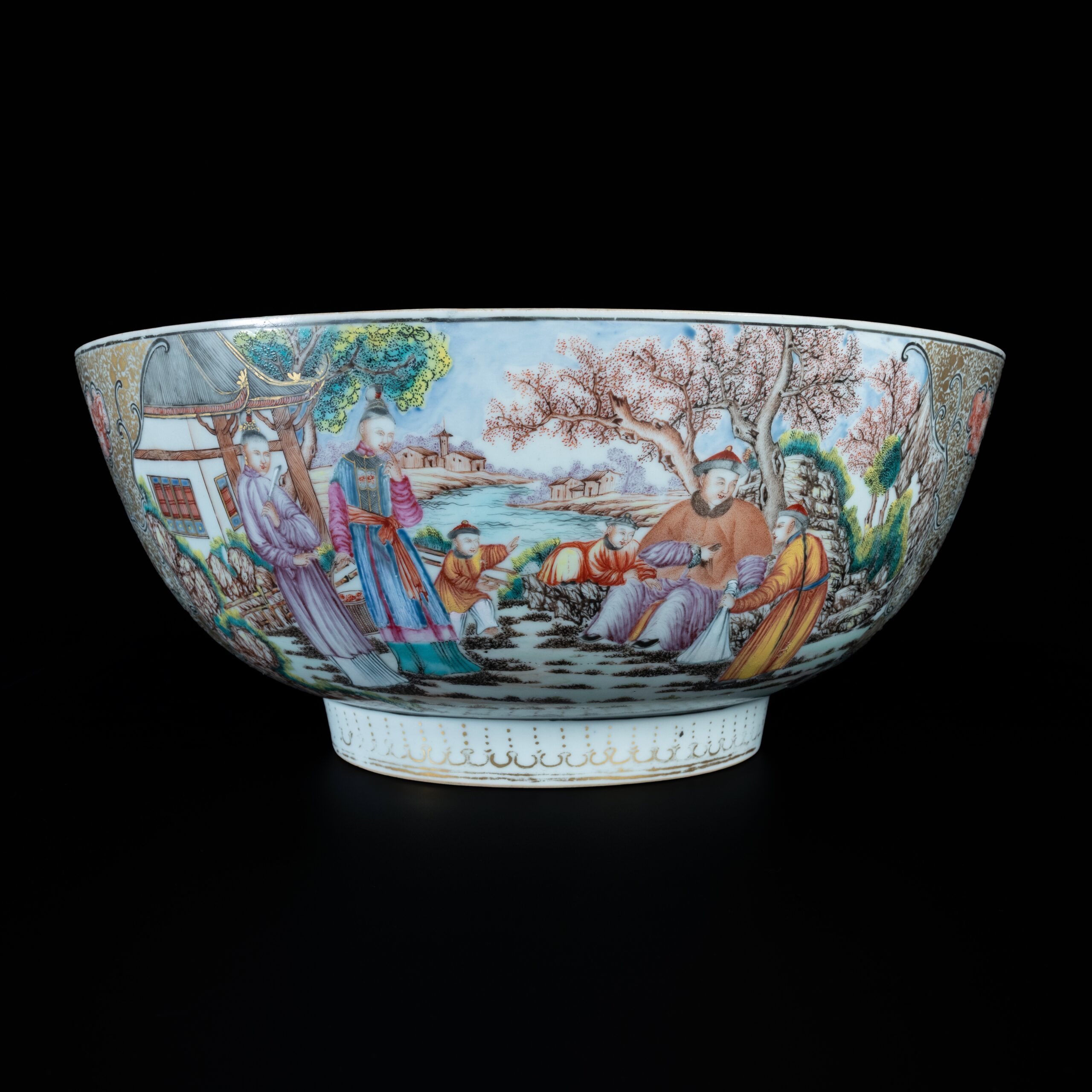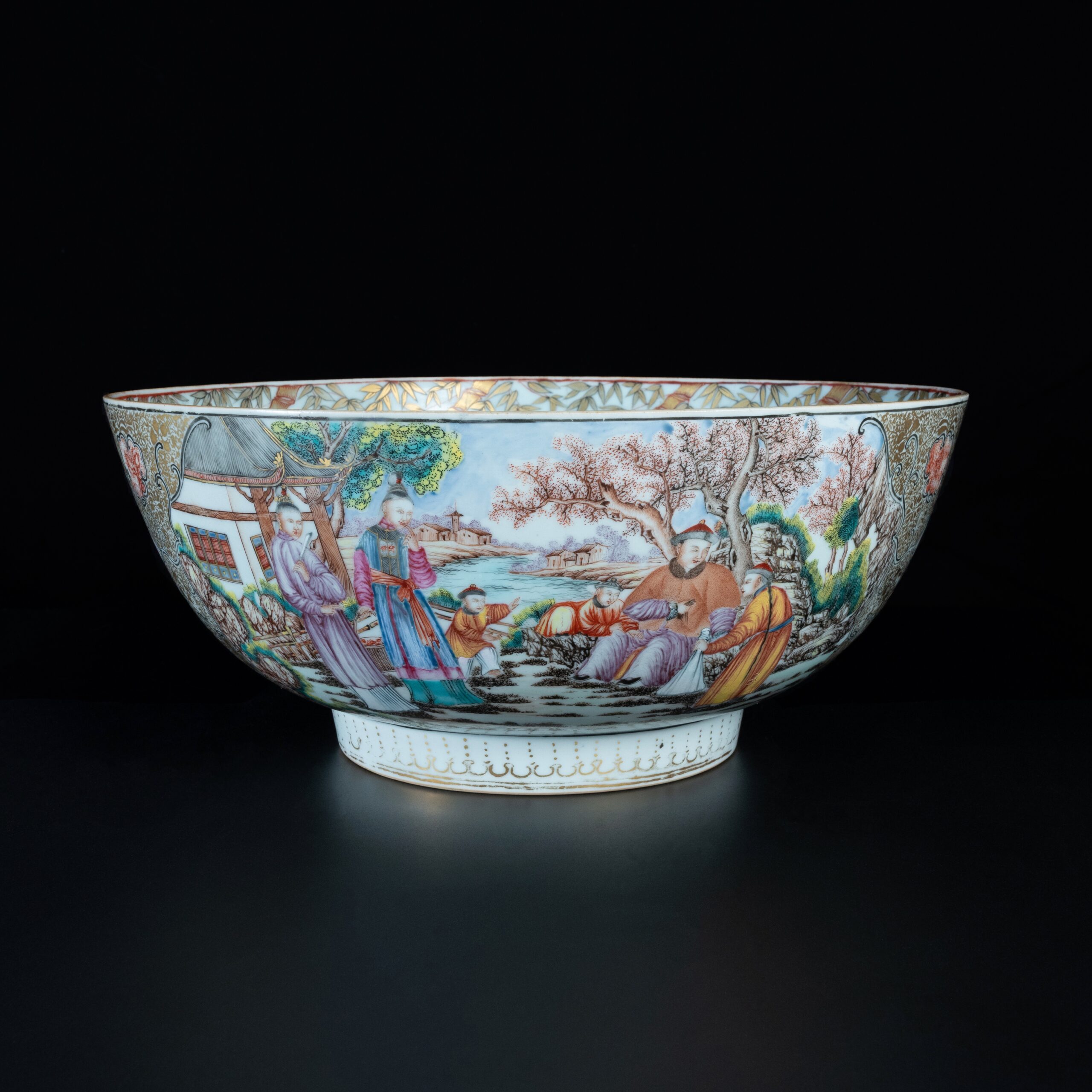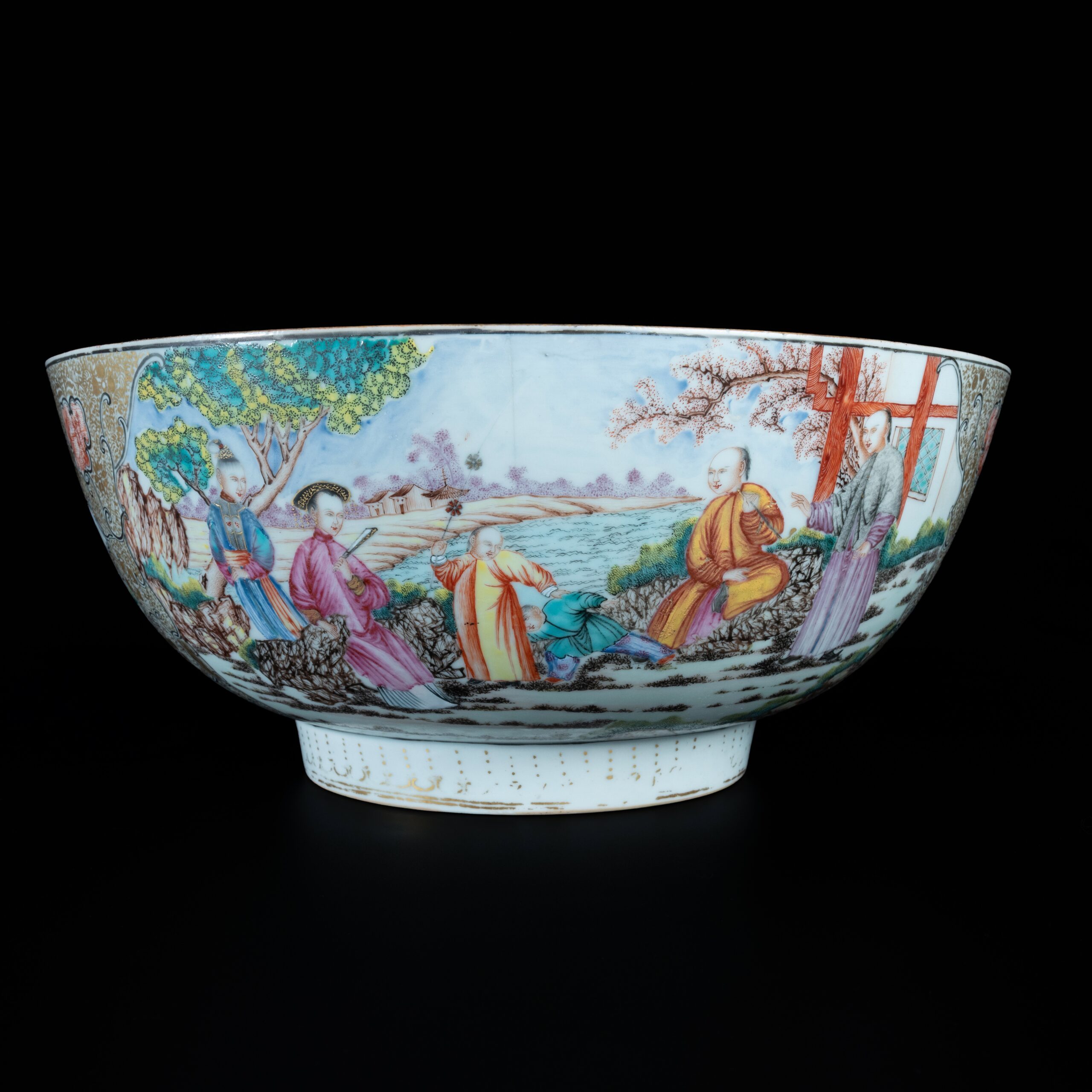 Large bol à punch en porcelaine à décor de personnages dit “Mandarin”.